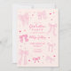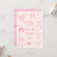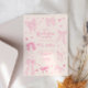 Cartão de convite para festa de formatura de vinheta e coquete com ilustração de arcos e corações cor-de-rosa.