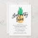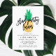 Convide amigos e família para seu luau de graduação com convites para festas de formatura divertidos. Os convites de luau de festa de formatura apresentam um abacaxi de cor d'água, fonte de script de tendência, espaços reservados para o seu texto personalizado e um padrão de pontos preto e branco em negrito na parte traseira do convite.