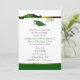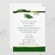 Convite de festa de formatura elegante, feito em branco, com gráficos de uma faixa verde e dourada que diz, Classe de, com o ano em texto de tom de ouro personalizado. Um boné verde e formando de ouro decora sob a faixa. Personalize todo o texto para se adequar ao seu baixo de graduação em posto.