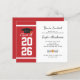 Adicione seu ano de graduação, nome e detalhes do local com data para este moderno fundo vermelho e branco negrito com convite de festa de formatura de tipografia negra usando nosso botão "Personalizar" acima