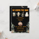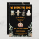 Este convite para crianças adoráveis e divertidas do Festa de Halloween traz a frase "Nós Trazemos o Bo." Vai fazer seus convidados rirem e ficarem animados por uma noite de festividades. Os caracteres de Halloween da cor da água separam esse convite e definirão o palco de um evento exclusivo e espetacular!