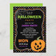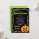 Figurino de Halloween/Aniversário / Convite de Festa de Férias de Férias. Verde Laranja e Bolinhas Roxa com a Aranha e Jack o' Lanterna.
