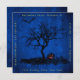 O convite do festival de Halloween impressionante mostra uma árvore sem folhas, um morcego negro voador, e uma abóbora laranja brilhante embaixo da árvore nua. O fundo é azul, amontoado. Crie um humor assustador e assustador com este convite. Dois lados. O texto na frente é personalizável. Personalize-o para torná-lo seu. Legal.