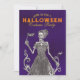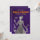 O convite para a festa vitoriana vitoriana de esqueleto assustador da Hhalloween apresenta uma ilustração de estilo vintage num fundo de textura roxa escura. Personalize com seus detalhes na parte traseira do cartão para convidar seus convidados para o evento. Navegue na Coleção de Convites de Festas de Halloween para obter mais designs.