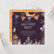 O convite do Halloween apresenta uma casa fantasma, assombrada, vassoura-de-bruxa, lápide e caldeirão de bruxa. As palavras "Festa de Halloween" são escritas de forma divertida e festiva. É a maneira perfeita de convidar seus amigos para uma festa de Halloween mestiça.