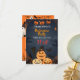 Traga um pouco de susto e diversão para a sua celebração com este convite para a festa de na moda Halloween! Apresentando um fundo noturno escuro com abóboras brilhantes, aranhas e teias intricadas de aranha, ele cria a vibração perfeita, assustadora, mas lúdica. Ideal para festas, reuniões familiares ou celebrações de amigos.
