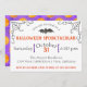 Morcego de Halloween e teias decorativas de cantos com padrão de cor de água roxo e laranja brilhante. Personalizar estilo, cor e tamanho da fonte de texto.