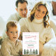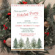 Design único clássico e vintage com árvores de inverno e tipografia verde e vermelha sobre fundo branco. Aproveite os feriados compartilhando esses belos cartões de convite com sua família e amigos para criar memórias inesquecíveis.