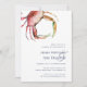 O convite para festa de noivado chic costeira apresenta uma ilustração de caranguejo vermelho-d-água do estilo vintage, com os detalhes da festa de noivado em azul-marinho clássico. Perfeito para a praia, verão ou celebração de noivados náuticos, esses convites de estilo costeiro invertem para o azul marinho sólido.