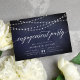 Nossos elegantes convites para festas de noivado em chic midnight blue e white apresentam um fundo azul-da-noite com textura rica, com cordas de luzes brancas no topo, e "festa de noivado" na tipografia de scripts de caligrafia. Personalize com seus detalhes de celebração de noivado em branco. Um design de chic em marinho escuro e branco para casais modernos e eventos elegantes.
