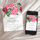 Os convites para festas de noivado florais elegantes apresentam uma cascata de vibrantes híbridos de aquarela, flores cor-de-rosa florescentes e folhagem verde-esmagadora. Personalize com seus detalhes de festa de noivado abaixo em uma mistura de blocos, serifas e tipos de caligrafia. Perfeito para comemorações de primavera ou noivado de verão.
