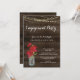 Pintou poinsettia de aquarela manual e jarro de mason complementado por um fundo de madeira rústico, luzes de cordas e uma bela caligrafia.