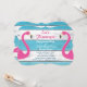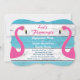 Inflamingos cor-de-rosa divertidos e o ditado, sotaque "Flamingle de Vamos" nesta Festa de noivado de tendência Convite em um fundo de madeira azul e branca listrada, fazer-o perfeito para um CHURRASCO de verão, luau, reunido pela piscina, ou noite temática flamingo. Os itens de coordenação podem ser encontrados na Coleção de Casamento de Praia Blue Flamingo. Se você precisar de ajuda para personalizar este convite ou precisar de outros itens de coordenação, entre em contato conosco em prettyfancyinvites@gmail.com com sua solicitação.