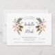 O convite à festa de noivado floral Chic apresenta os seus nomes em um roteiro elegante de caligrafia, enquadrado por pêssego e flores cor-de-rosa pinceladas, botões e verde. Personalize com seus detalhes de festa de noivado abaixo.