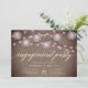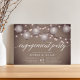 Nossos convites à festa de noivado elegantes e rústicos apresentam um fundo kraft escuro com cordas de luzes brancas e lanternas luminosas de papel no topo, e "festa de noivado" na tipografia de scripts de caligrafia. Personalize com seus detalhes de celebração de noivados em letras brancas.