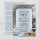Convite de festa de solteira elegante com tema náutico com estrelas-do-mar, conchas, cordas e imagens de praia.