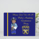 Este Convite à Festa de formatura da Academia de Polícia é decorado na frente com um Patch de Polícia, uma policial branca de brinquedo, e as palavras "Por favor, junte-se a nós numa Festa de formatura da Academia de Polícia." As costas estão decoradas com mulheres policiais brancas.