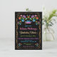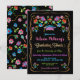 Convites coloridos e bonito para Festa de formatura FIesta mexicana com faux gold glitter frame e fonts. Este é para uma graduação do Segundo grau ou da faculdade. Características desenhadas à mão em flores bordadas, bonés de formatura e maracas em fundo preto. Ilustração desenhada à mão por McBooboos. As palavras "Festa de formatura" não podem ser alteradas, mas podem ser eliminadas. Bordado Faux, este é um desenho