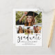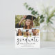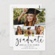 Um convite moderno para a graduação, com a palavra "formando" na frente, em caligrafia por na moda, além de 4 fotos de seu mais velho favorito. Adicione seus próprios detalhes pessoais de celebração às costas. Esta é a versão minimalista em preto e branco.