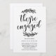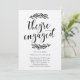 Esta janto de convite de casamento rústica para a festa de noivado de um design apresenta louros de campo desenhados à mão com uma fonte de caligrafia divertida.