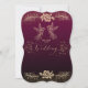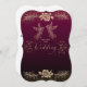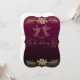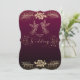 con fondo de color cereza degradado y dos palomas como símbolo de la pareja rodeadas de rosas y purina dorada