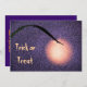 Este convite para festas de Halloween apresenta uma lua rosa e amarela pálida abstrato, brilhante, sobre um fundo com textura roxa leve, com uma fita solteiro de grama curvando na frente. Todo o texto pode ser personalizado para seu evento especial.