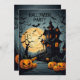 Convite para o Halloween e cartão de diversão assustador. Junte-se a nós, se ousar, para uma Noite Spooktacular na nossa Mansão Halloween! Convidamos a família e os amigos para um período incrivelmente bom, cheios de delícias estranhos, surpresas fantasmagóricas e deliciosas guloseimas. Venham vestidos com as vossas fantasias mais arrepiantes da coluna, e preparem-se para uma noite de truques e guloseimas que vão enviar calafrios pela vossa coluna. Nossa casa assombrada estará viva com a decoração assustadora, rastejadeiras assustadoras e a presença fantasmagórica de espíritos divertidos. Não perca uma noite de riso e medo. Venha e faça parte da equipe do Tricky Treaters Halloween enquanto celebramos o Halloween no estilo. Você sobreviverá à noite?"