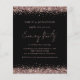 Um valor para o alternativo do ORÇAMENTO em tamanho menor de 4,5 x 5,6" de semirbrilho de 110 lbs, que é de espessura semelhante a um cartão postal (no entanto, não é adequado para uso como cartão postal). POR FAVOR, OBSERVE QUE HÁ UM convite por folha. Um estilo manuscrito para o Partido da Noite e o resto do texto que você pode personalizar facilmente. Num fundo de preto, com a coordenação da tipografia do ouro-rosa.
