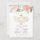 Rosa Dourada Peach peony floral First Twin Girl Convite.