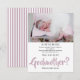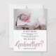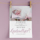 Peça ao seu melhor amigo, irmã ou primo para ser a madrinha do seu bebê com este cartão com fotos maravilhoso, apresentando uma fotografia fofa do seu bebê, uma mensagem de modelo, todos os estilos de fonte e cores de fundo podem ser alterados clicando no link personalizado após personalizar.