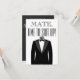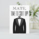 Hora do camarada de vestir smoking na frente. Personalizado com o nome do padrinho de casamento, a mensagem, o nome do noivo e a data indicada para o casamento.