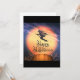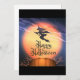 Uma bruxa voando pelo céu com uma mensagem feliz de Halloween. Este design parece realmente eficaz nestes Convites