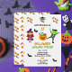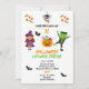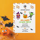 Fale com o convite da Festa de Festas de Festas de Festas de Figurino Bonito com Carateres de Halloween divertidos e a tipografia festiva de Halloween que você pode personalizar facilmente. Feliz Dia das Bruxas!