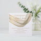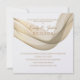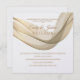 Este convite de recepção de casamento é mostrado em um layout clássico em um fundo branco mostrado em uma opção de papel de Peal Shimmer. Selecione o papel escolhido. Gráfico do Dourado véu revestido pela frente superior. Os nomes dos casais se misturam com o gráfico de véu em uma cor de Ouro no topo. Texto do corpo mostrado em Ouro por baixo da fita do véu. Personalize este item, retirando o texto do exemplo e colocando suas informações nele. Imagem de ações.