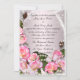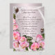 Bonito rosas cor-de-rosa com pérolas sobre fundo rosa. Este belo convite para o casamento é uma forma moderna e elegante de convidar a família e os amigos para o seu casamento. Personalize a placa alterando o texto nos campos fornecidos frente e verso. Você pode alterar o estilo, o tamanho e a cor da fonte, bem como o tipo e o estilo do papel.