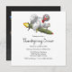 Um Cartão de Convite para Janto de Ação de Graças divertido e doce, onde a Turquia escapou da Ação de Graças e está a viajar através do universo com a ajuda do seu foguete.