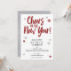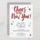 "Anima-te ao Ano Novo" Convite de Véspera de Ano Novo em prata cintilante e vermelho em fundo branco. Personalize com todos os seus detalhes para informar o pessoas sobre o seu evento!