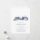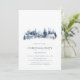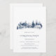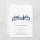 Festa de Natal, aldeia de inverno, paisagem azul branca Convite. Um Convite de festas de Natal corporativo em estilo clássico, com paisagem de inverno monocromática em cores marinho azul e branca. Na moda e design elegante.
