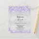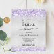 Um chá de panela moderno e elegante. Fundo metálico de aspecto fino prateado decorado com brilho de cor violeta, lavanda, faíscas. Personalize e adicione um nome e detalhes da parte. Letras pretas coloridas.
