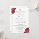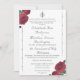 A design apresenta a imagem de uma cruz de prata e toca no centro de cima, mostrando que o Cristo está no centro da união nupcial entre homem e mulher. A imagem de rosas finos é exibida nos cantos superior esquerdo e inferior direito. Um elegante florescimento prateado completa a moldura do formato tradicional de convite para o Casamento Católico. Os nomes da noiva e do noivo são apresentados em uma elegante fonte nupcial. Texto e borda são apresentados em cor prateada. Também disponível com fonte e borda burgundy-rosa. Projetado para coordenar com a suíte de casamento católico das Rosas Finas.