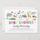 Uma multidão de animais africanos e cores brilhantes e felizes fazem deste convite chá de fraldas uma forma alegre e divertida de celebrar a mãe com uma celebração temática safari neutra do gênero. Personalize todo o texto com seus detalhes para um convite de chá adoçadamente personalizado e o backer correspondente padronizado pode ser removido para a adição de texto extra ou de uma foto.