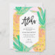 Esta design apresenta um moderno tema tropical de verão com cor-de-rosa pincel, folha de ouro falso e ananases amarelos frescos!
