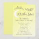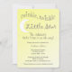 Twinkle Twinkle O convite para chás de fraldas neutro de gênero Little Star é mostrado com cinzas moles divertidas no topo com lua branca e estrelas brancas e cinzas brilhando. Texto de cinza para a parte personalizada do convite. O verso do convite é amarelo suave, mas pode ser facilmente alterado para outra cor. A gradação da cor à frente é de amarelo mole a branco de ovo. Design divertida para o chá de fraldas neutro de gênero!