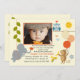 Um encantamento, juvenil, convite da foto comemorar um aniversário. O cartão caracteriza um elefante, macaco e coruja na parte dianteira e um urso e snuck na parte traseira. Aperfeiçoe para um ou outro género. (FP)