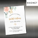 Um convite elegante de cartão megnético para uma festa de aniversário 40ª (ou qualquer idade). Um fundo branco chic. Decorados com ouro rosa e rosa cor-de-rosa-esbranquiçada, folhas de eucalipto florais, verdes, galhos, verde-verde e um cinzeiro dourado falso. Personalize e o nome e os detalhes da festa. Letras pretas e ouros. O nome é escrito com um moderno estilo escrito à mão.