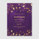 Um convite magnético moderno, na moda e glamouroso para uma festa de aniversário 40ª (ou qualquer idade). Um fundo cor roxo profundo com estrelas douradas falsas. A cor roxa é irregular. O nome é escrito com um moderno estilo escrito à mão. Personalize e adicione os detalhes da sua festa.