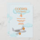 Convide seus amigos para um aniversário de voo alto com este convite de festas temático de avião. Com um plano prop e nuvens. Para cima e para fora!
