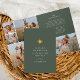 Este moderno cartão verde minimalista apresenta uma simples estrela de Natal dourada com uma mensagem de saudação religiosa de Natal editável e o seu nome personalizado num fundo verde clássico. O dentro inclui uma colagem de fotos da família e um ano editável na mensagem de feriado para amigos e familiares. A parte traseira desta simples placa de cartões de natal dobrada é uma foto personalizada de cheio!