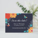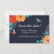 Estes cartões de convite antecipado são tão atraentes quanto coloridos. Laranjas quentes e aquas frescos se destacam contra um fundo escuro; abelhas zumbem entre as flores.