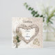 Convite Elegante Casamento Antigo Coração Floral Rosas Bege Creme 2